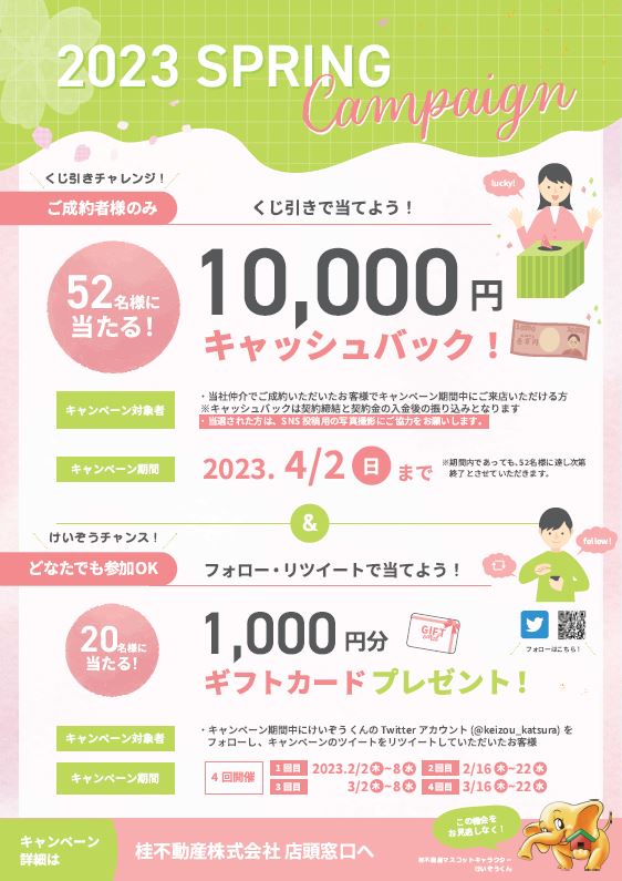 2023年2月1日より、桂不動産全店で2023年春キャンペーンが始まります。