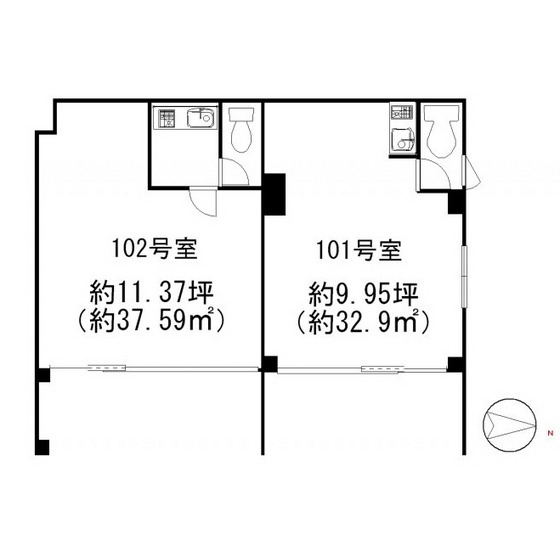 | 賃貸面積 | 37.59m²(約12坪) | ||