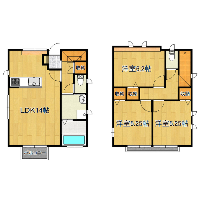 | 間取り詳細 | LDK14,洋室6.2,洋室5.25,洋室5.25 | ||