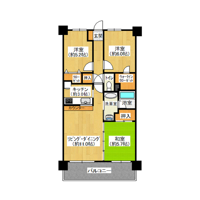 | 間取り | 3LDK | 専有面積 | 66.6m² |