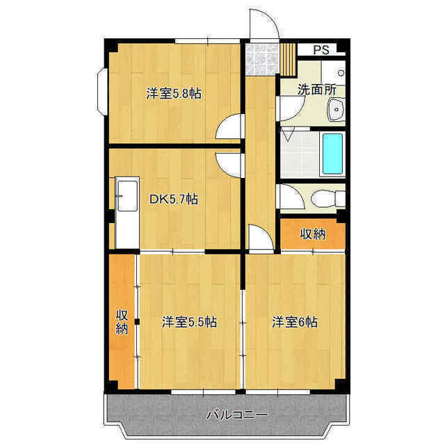 | 間取り | 3DK | 専有面積 | 55.39m² |