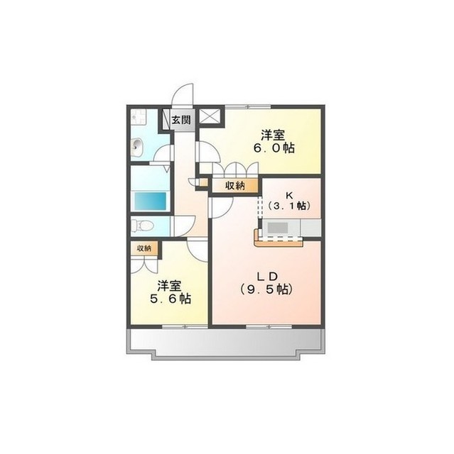 | セールスポイント | お洒落なカウンターキッチンの2LDK! |