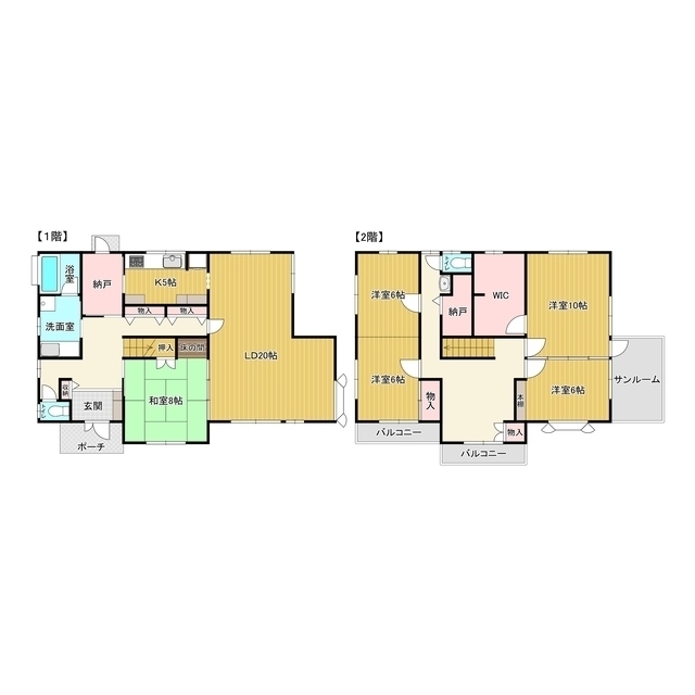 | 間取り詳細 | LD20,K5,和室8,洋室10,洋室6,洋室6,洋室6 | ||