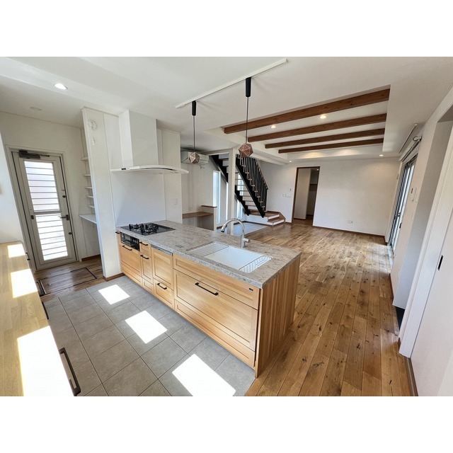 | 設備 | 電気,都市ガス,上水(公営),下水(公営),ディンプルキー,玄関ダブルロック,シューズボックス,トイレ(水洗),温水洗浄便座,バス・トイレ別,洗面所独立,洗髪洗面化粧台,浴室乾燥機,シャワー,浴室1坪,3口ガスコンロ,ビルトインコンロ,システムキッチン,対面キッチン,給湯(ガス),追焚き,室内洗濯置場,TVモニタ付インターホン,24時間換気システム,クローゼット,ウォークインクローゼット,床下収納,押入,物置,エアコン,複層ガラス,網戸,電動シャッター,テラス,バルコニー,ウッドデッキ,専用庭 | ||