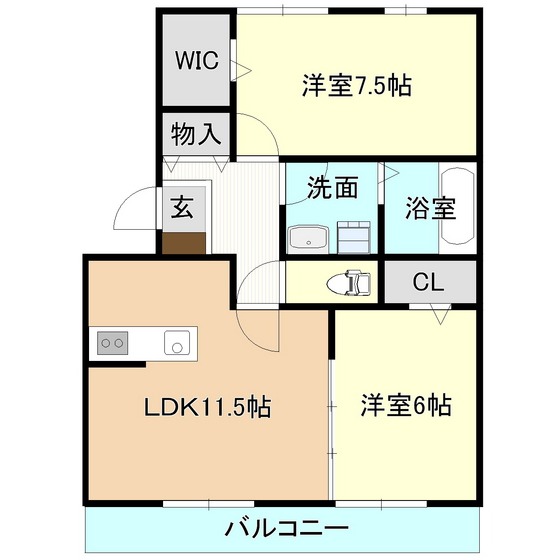 | 間取り詳細 | 洋室6,洋室7.5,LDK11.5 | ||