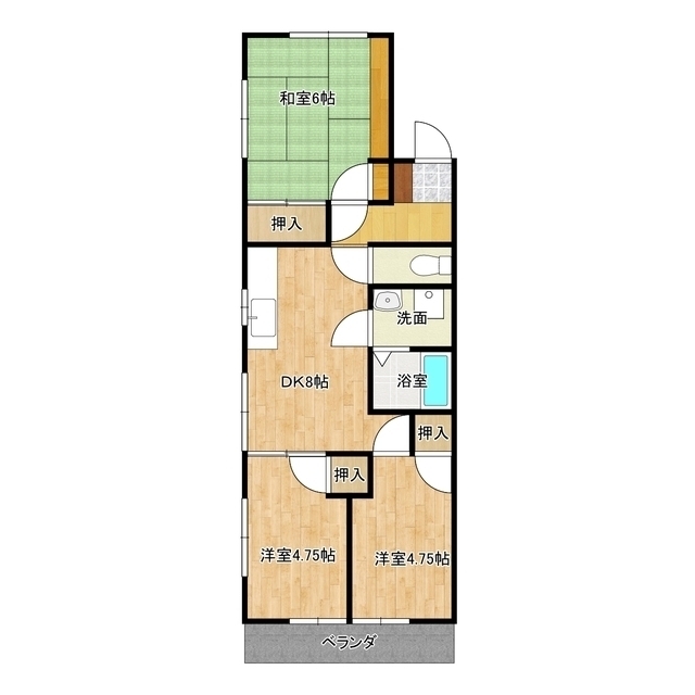 | 間取り詳細 | 洋室4.75,洋室4.75,和室6,LD8 | ||